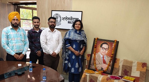 ਜ਼ਿਲ੍ਹਾ ਮਾਲੇਰਕੋਟਲਾ ਵਿੱਚ ਡਾ. ਬੀ.ਆਰ. ਅੰਬੇਦਕਰ ਜਯੰਤੀ ਉਤਸ਼ਾਹ ਅਤੇ ਸ਼ਰਧਾ ਨਾਲ ਮਨਾਈ ਗਈ। ਇਹ ਸਮਾਗਮ ਵਧੀਕ ਡਿਪਟੀ ਕਮਿਸ਼ਨਰ (ਏ.ਡੀ.ਸੀ) ਰਿੰਪੀ ਗਰਗ ਦੀ ਅਗਵਾਈ ਹੇਠ ਸਮਾਜਿਕ ਨਿਆਂ, ਅਧਿਕਾਰਤਾ ਅਤੇ ਘੱਟ ਗਿਣਤੀ ਭਲਾਈ ਵਿਭਾਗ ਵੱਲੋਂ ਆਯੋਜਿਤ ਕੀਤਾ ਗਿਆ, ਜਿਸ ਵਿੱਚ ਵਿਭਾਗ ਦੇ ਜ਼ਿਲ੍ਹਾ ਪੱਧਰੀ ਅਧਿਕਾਰੀਆਂ ਅਤੇ ਕਰਮਚਾਰੀਆਂ ਤੋਂ ਇਲਾਵਾ ਹੋਰ ਵਿਭਾਗਾਂ ਦੇ ਨੁਮਾਇੰਦਿਆ ਨੇ ਹਿੱਸਾ ਲਿਆ ।