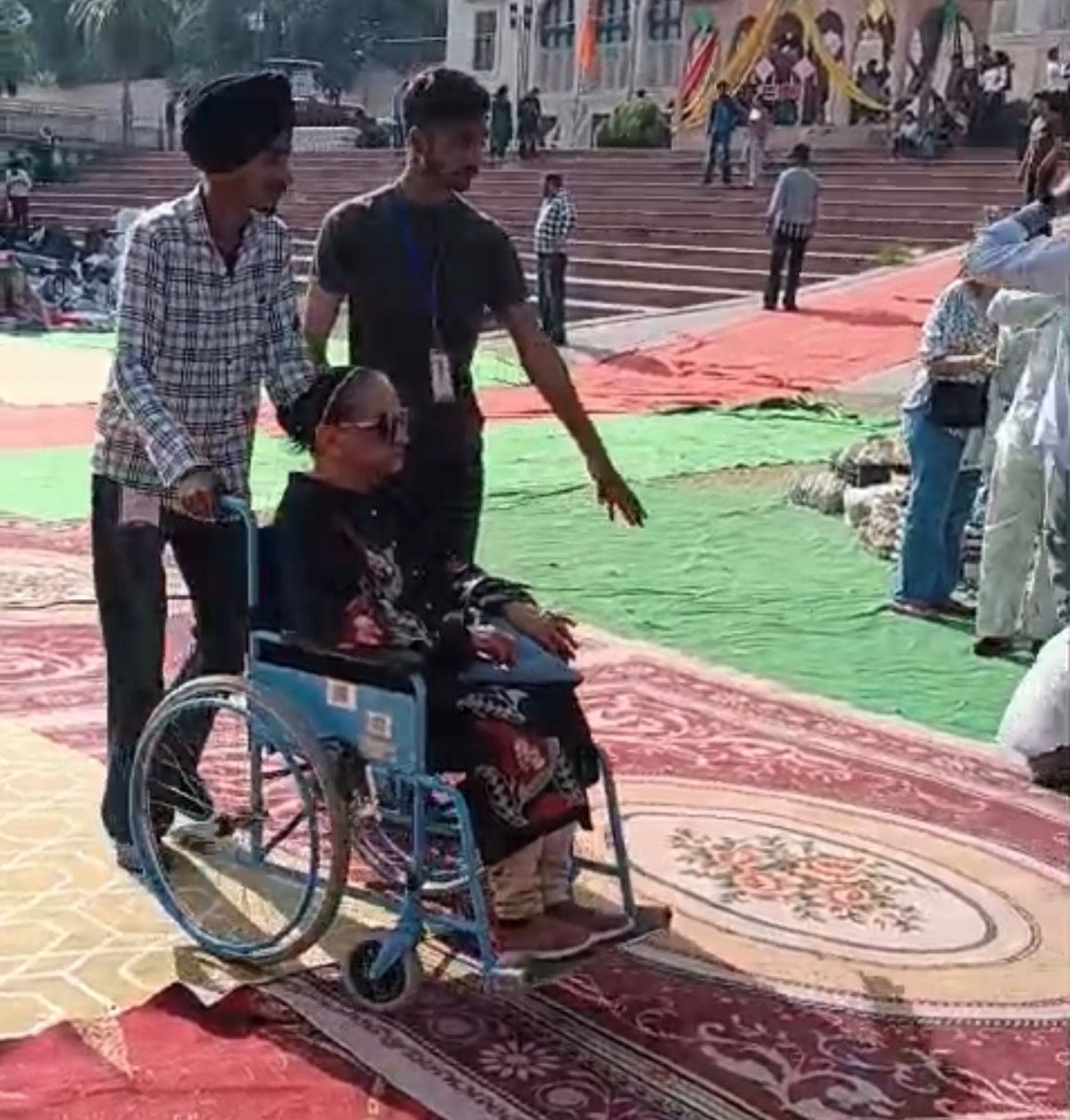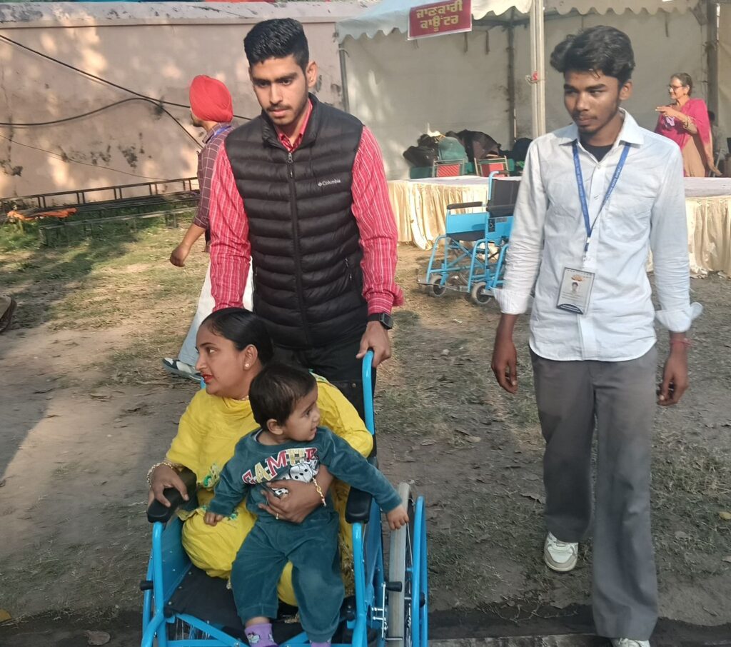 ਫੋਟੋ ਕੈਪਸਨ – ਪੰਜਾਬ ਸਖੀ ਸ਼ਕਤੀ ਕਾਰਫ਼ਟ ਮੇਲੇ ਦੋਰਾਨ ਤੁਰਨ ਫਿਰਨ ਤੋਂ ਅਸੱਮਰਥ ਪਬਲਿਕ ਨੂੰ ਵੀਲਚੇਅਰ ਤੇ ਸੇਵਾਵਾਂ ਦਿੰਦੇ ਹੋਏ ਵਲੰਟੀਅਰ ।