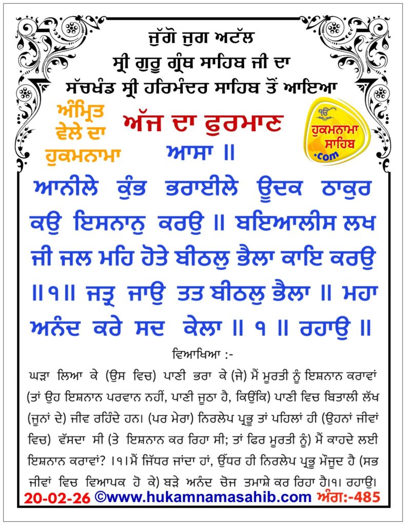 Home Hukamnama Sahib ਹੁਕਮਨਾਮਾ ਸ੍ਰੀ ਦਰਬਾਰ ਸਾਹਿਬ ਅੰਮ੍ਰਿਤਸਰ