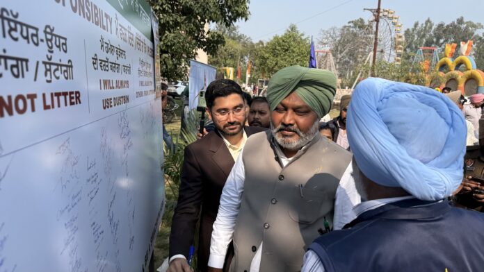 ਫੋਟੋ ਕੈਪਸ਼ਨ-ਸ਼ੀਸ਼ ਮਹਿਲ ਵਿਖੇ ਸਖੀ ਸ਼ਕਤੀ ਕਰਾਫ਼ਟ ਮੇਲੇ ਵਿੱਚ ‘ਮੇਰਾ ਪਟਿਆਲਾ ਮੈਂ ਹੀ ਸਵਾਰਾਂ’ ਮੁਹਿੰਮ ਦੇ ਵਾਰੀਅਰਜ਼ ਪਟਿਆਲਾ ਨੂੰ ਸਾਫ਼ ਸੁਥਰਾ ਰੱਖਣ ਲਈ ਪ੍ਰਣ ਕਰਨ ਦੇ ਦਸਤਖ਼ਤ ਕਰਵਾਉਂਦੇ ਹੋਏ।
