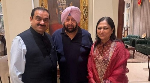 ਉਦਯੋਗਪਤੀ ਗੌਤਮ ਅਡਾਨੀ ਅਤੇ ਉਨ੍ਹਾਂ ਦੀ ਧਰਮਪਤਨੀ ਪ੍ਰੀਤੀ ਅਡਾਨੀਨੇ ਵੀਰਵਾਰ ਸ਼ਾਮ ਭਾਜਪਾ ਦੇ ਵਰਿਸ਼ਠ ਆਗੂ ਅਤੇ ਪੰਜਾਬ ਦੇ ਸਾਬਕਾ ਮੁੱਖ ਮੰਤਰੀ ਕੈਪਟਨ ਅਮਰਿੰਦਰ ਸਿੰਘ ਨਾਲ ਇਕ ਨਿੱਜੀ ਡਿਨਰ ਮੀਟਿੰਗ ਵਿੱਚ ਹਿੱਸਾ ਲਿਆ।